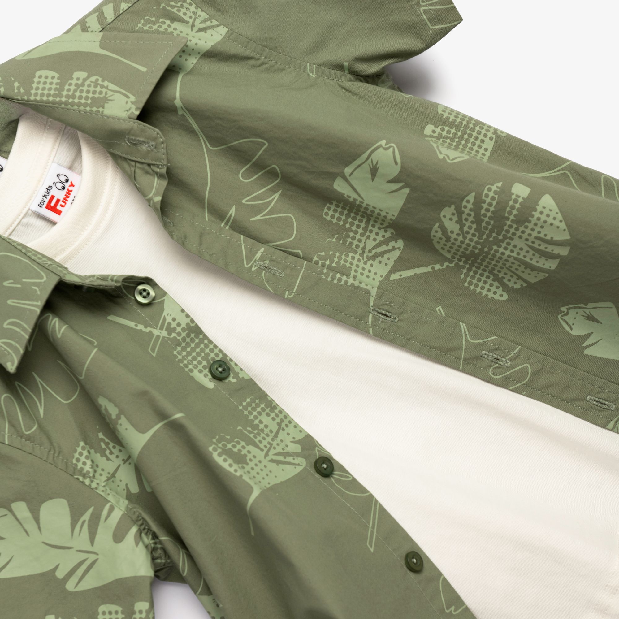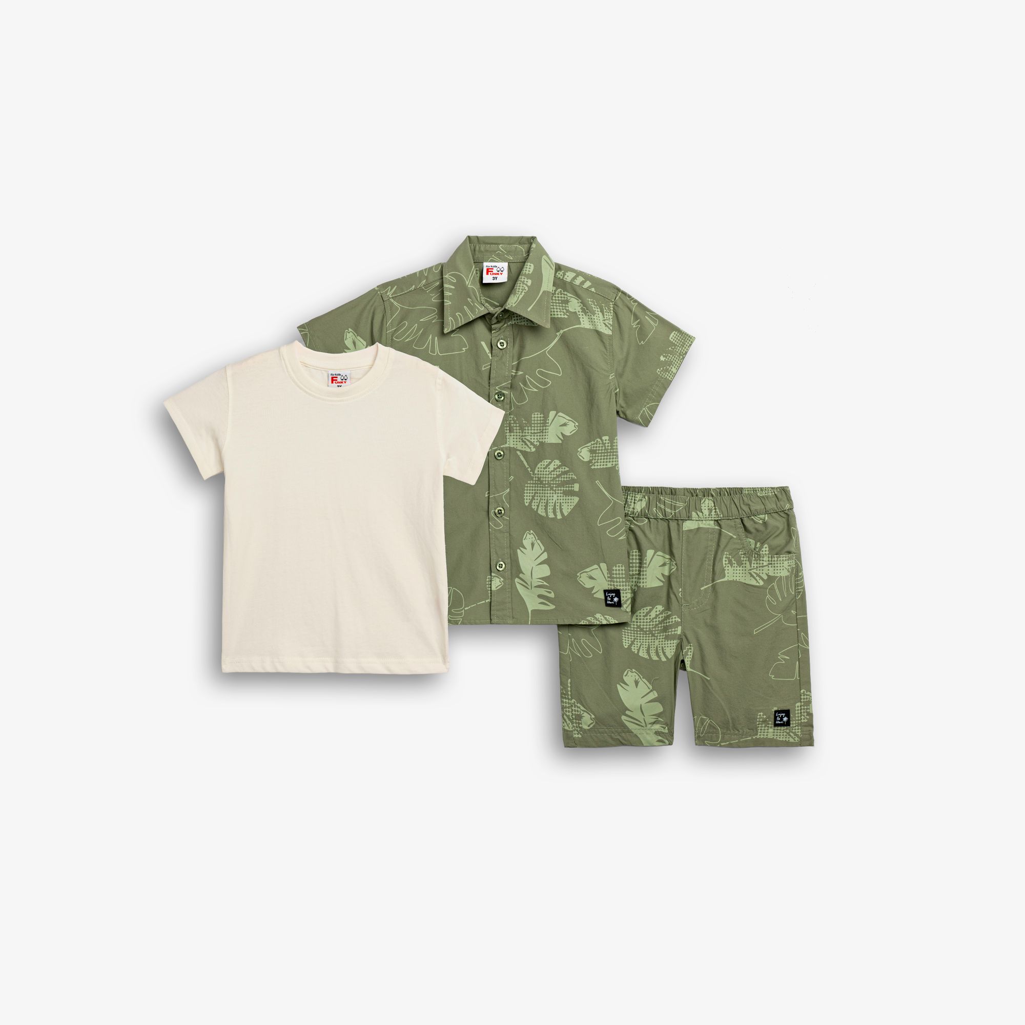 Σετ 3 τεμαχίων,βερμούδα σταθερή-T-shirt-πουκάμισο.Το σετ είναι βαμβακερό, άνετο, δροσερό και κατάλληλο για βόλτες και για το σχολείο.