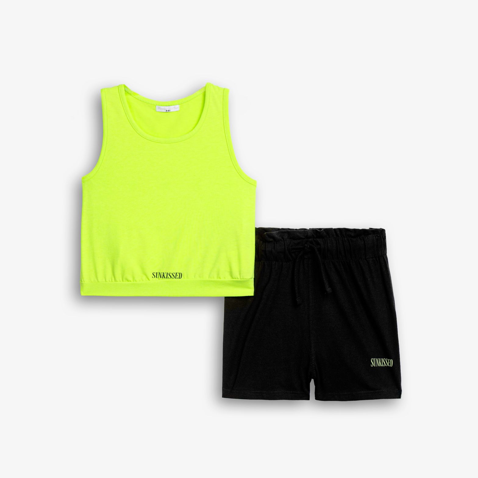 Σετ μπλουζάκι με τύπωμα (sunkissed) και σόρτς κάλτσα λύκρα με τύπωμα σε χρώμα φωσφορούχο πεπονί/μαύρο για κορίτσι 6-16 ετών. Ποιότητα 95% COTTON-5% ELASTAN …