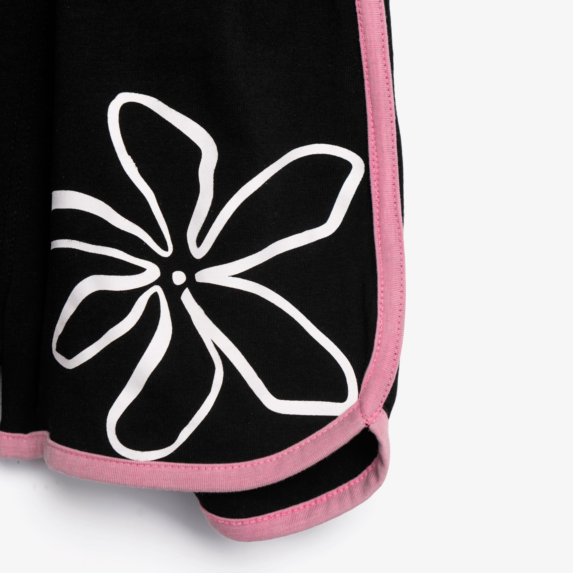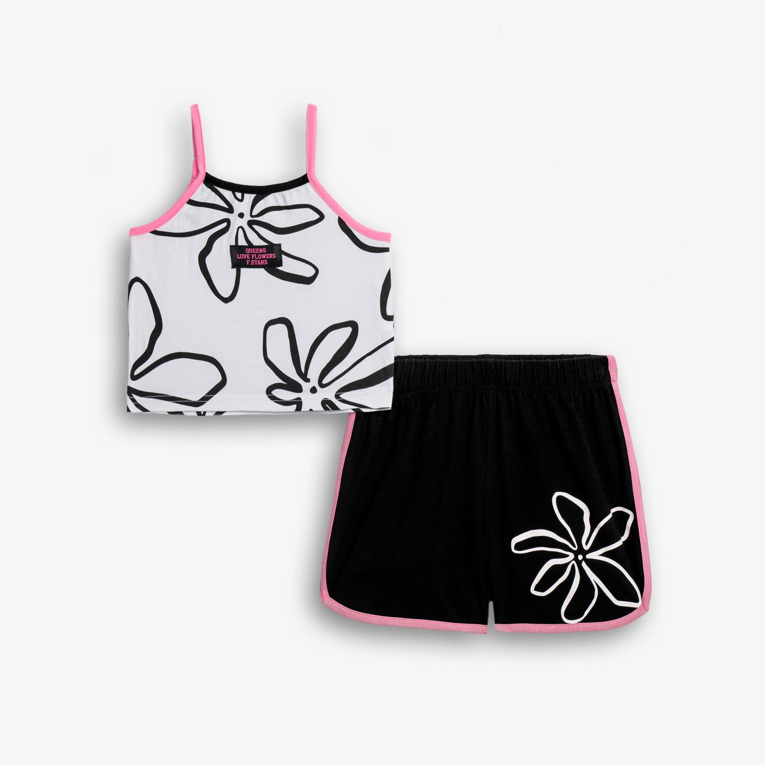 Παιδικό Σετ Μπλούζα & Σορτς με Λουλούδια για Κορίτσι Λευκό/Μαύρο
