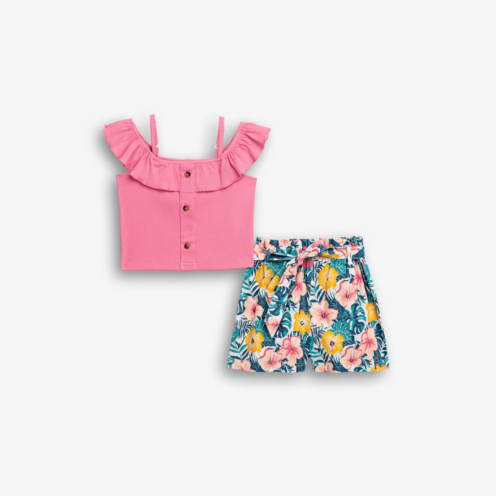 Σετ καλοκαιρινό σταθερή βερμούδα με λουλούδια κ τοπάκι σε έντονο ροζ για τη βόλτα αλλα κ πιο επίσημες εμφανίσεις.