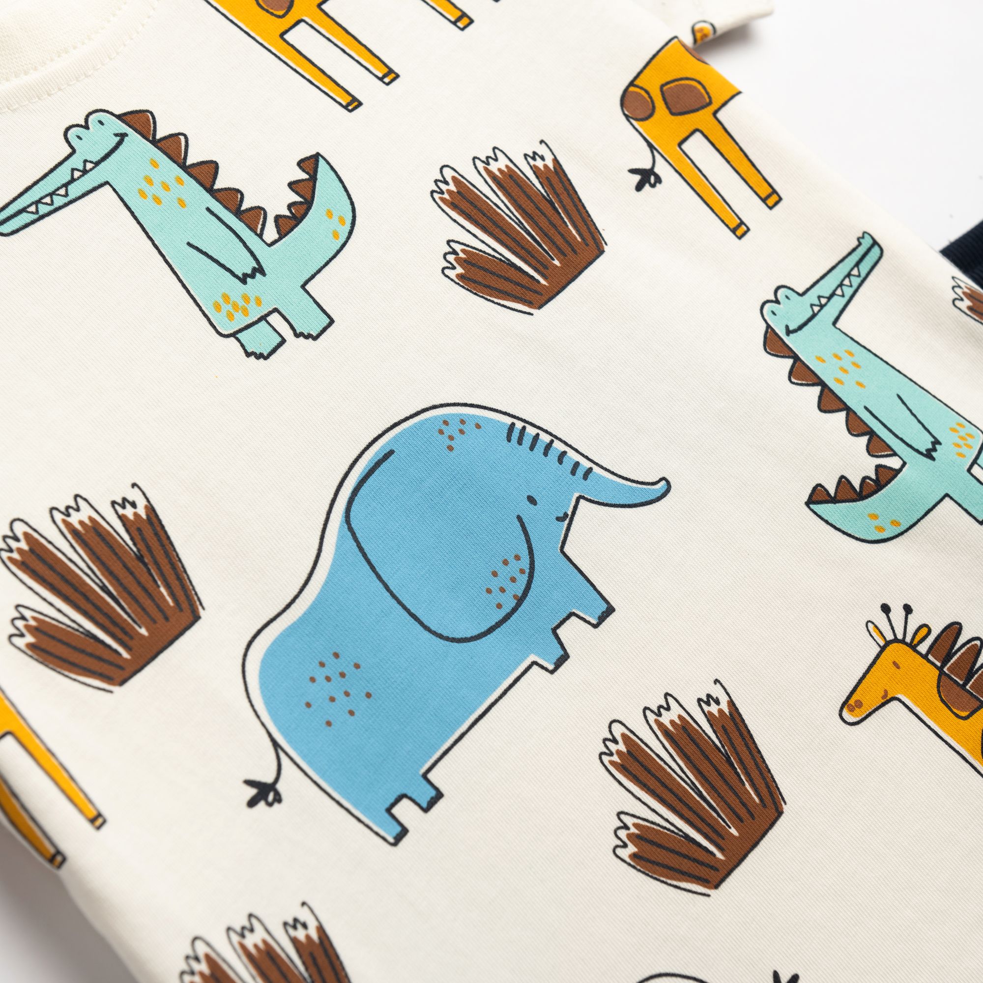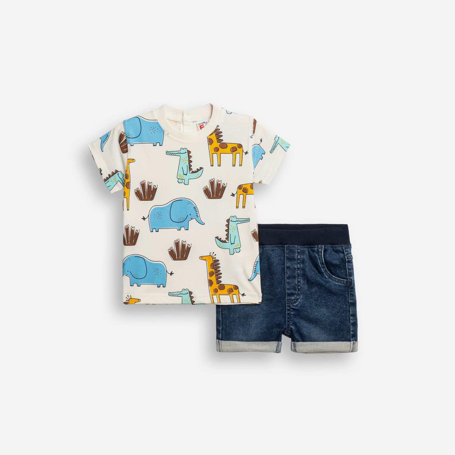 Σετ μπλούζα εκρού με ζωάκια με τζίν βερμούδα,μαλακή,ελαστική με λάστιχο στη μέση για άνετη εφαρμογή.