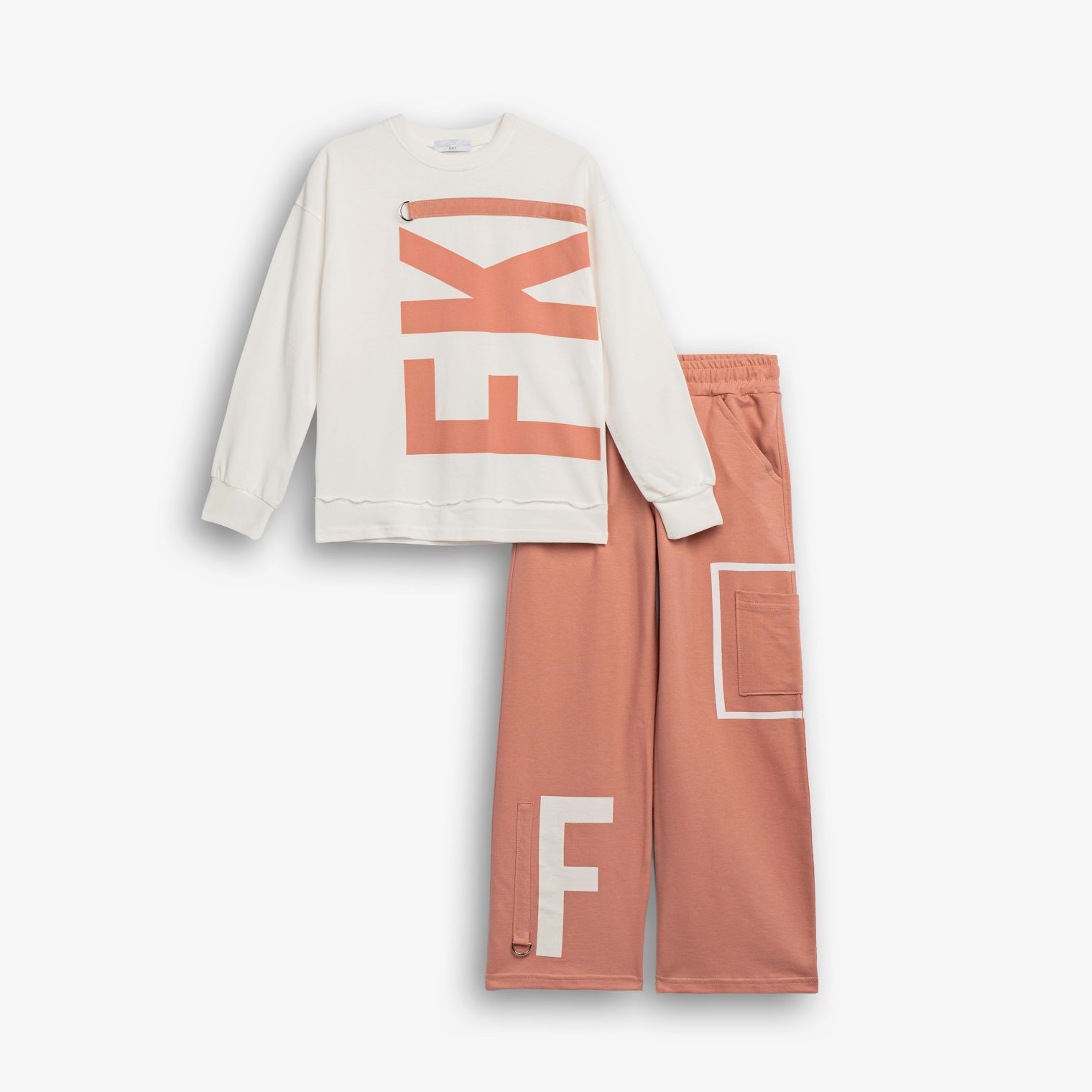 Σετ φόρμες χωρίς χνούδι για κορίτσια σε χρώμα ροζ-εκρού,κατάλληλες για τους ανοιξιάτικους μήνες.