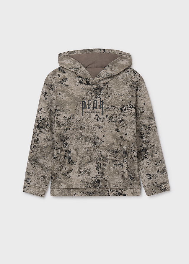 Μπλούζα φούτερ μακρυμάνικη για αγόρι. Γιακάς με κουκούλα. Με λάστιχο στο κάτω μέρος και τους καρπούς για καλύτερη εφαρμογή. Λειτουργικές τσέπες μπροστά. Διακοσμητικές λεπτομέρειες.