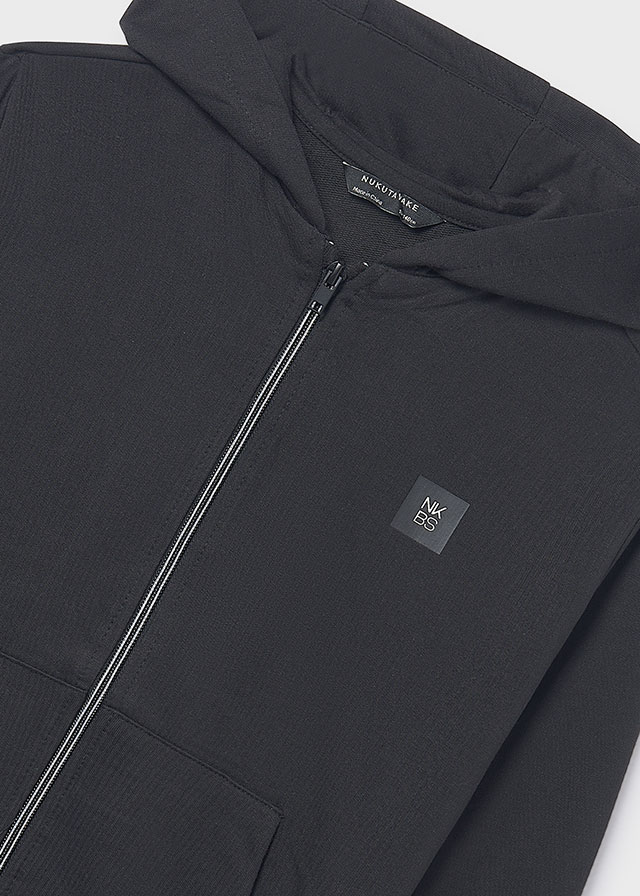 Ζακέτα χωρίς χνούδι στο εσωτερικό της με κουκούλα και τσέπες μπροστά. Κλείσιμο με φερμουάρ. Ιδανική για καθημερινό ντύσιμο την άνοιξη.
