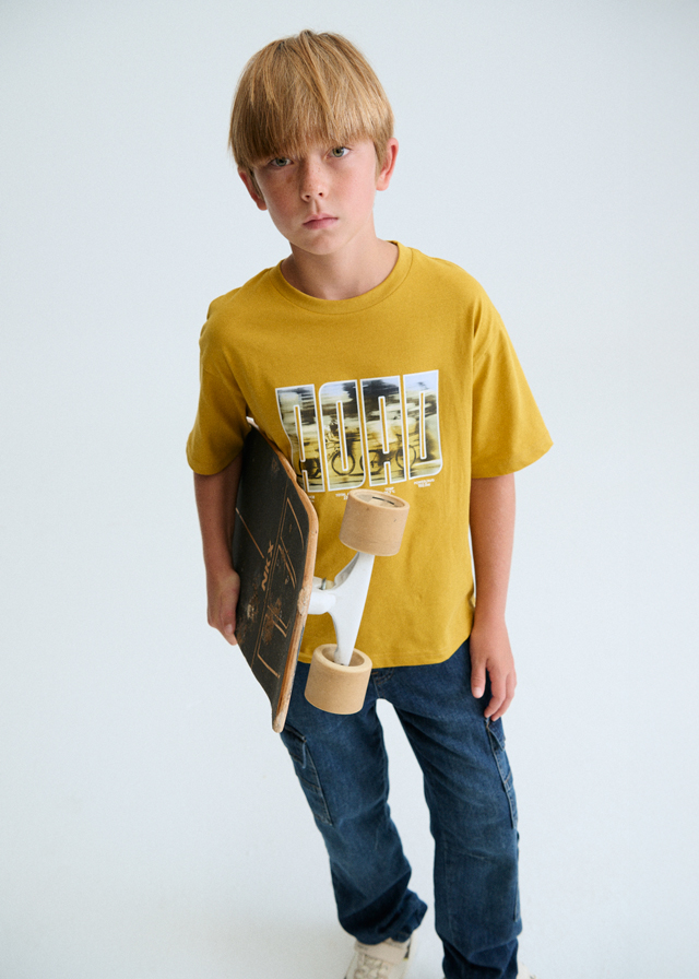 Κοντομάνικο μπλουζάκι για αγόρια σε κίτρινο χρώμα με τύπωμα για casual καλοκαιρινές εμφανίσεις. Απαλό και δροσερό ύφασμα, στρόγγυλη λαιμόκοψη. Συνδιάζεται εύκολα.