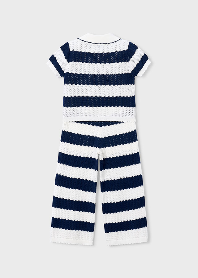 πλεκτό σετ για κορίτσια σε χρώμα ναυτικό μπλέ-πάγου,μπλουζάκι με κουμπάκια κ παντελόνα για ξεχωριστές εμφανίσεις.