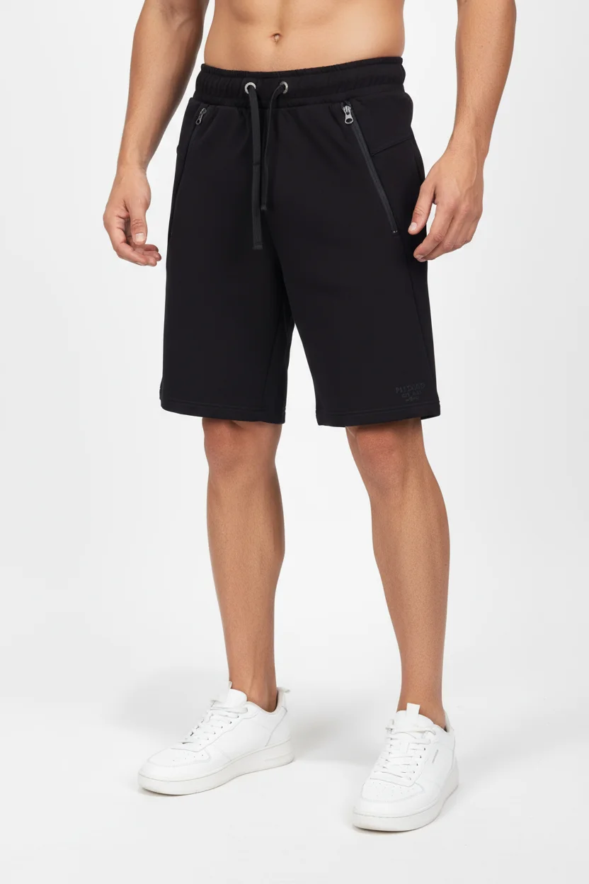 Ανδρική βερμούδα φόρμας σε άνετη γραμμή, ιδανική για σύγχρονα casual και sporty outfits. Διαθέτει ελαστική μέση με ρυθμιζόμενο κορδόνι για άψογη εφαρμογή, καθώς και πρακτικές μπροστινές τσέπες με φερμουάρ που προσδίδουν έναν δυναμικό χαρακτήρα. Μια ποιοτική επιλογή που συνδυάζει την άνεση με μοντέρνες λεπτομέρειες, ιδανική για την προπόνηση ή τις καθημερινές σας δραστηριότητες.