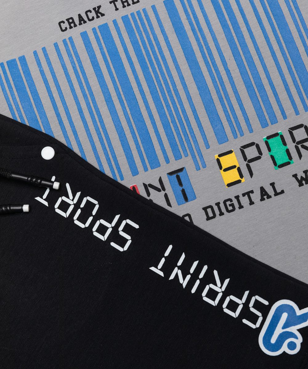 Παιδικό καλοκαιρινό σετ με βερμούδα Sprint. Κοντομάνικη μπλούζα με σχέδιο και βερμούδα με εσωτερικό λάστιχο και κορδόνι. 100% βαμβάκι.