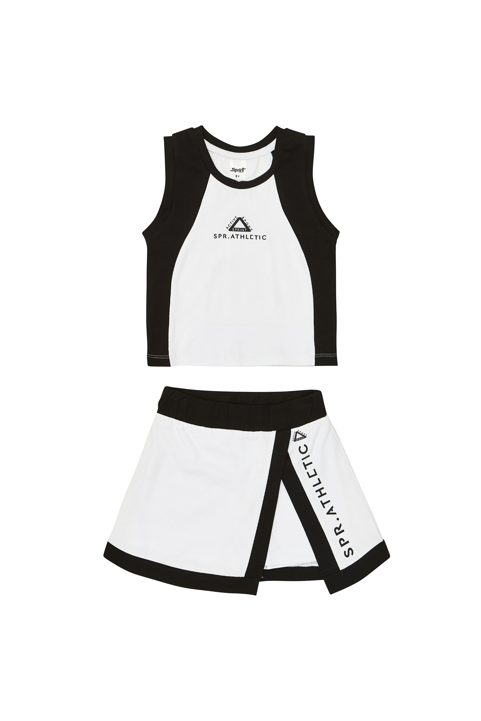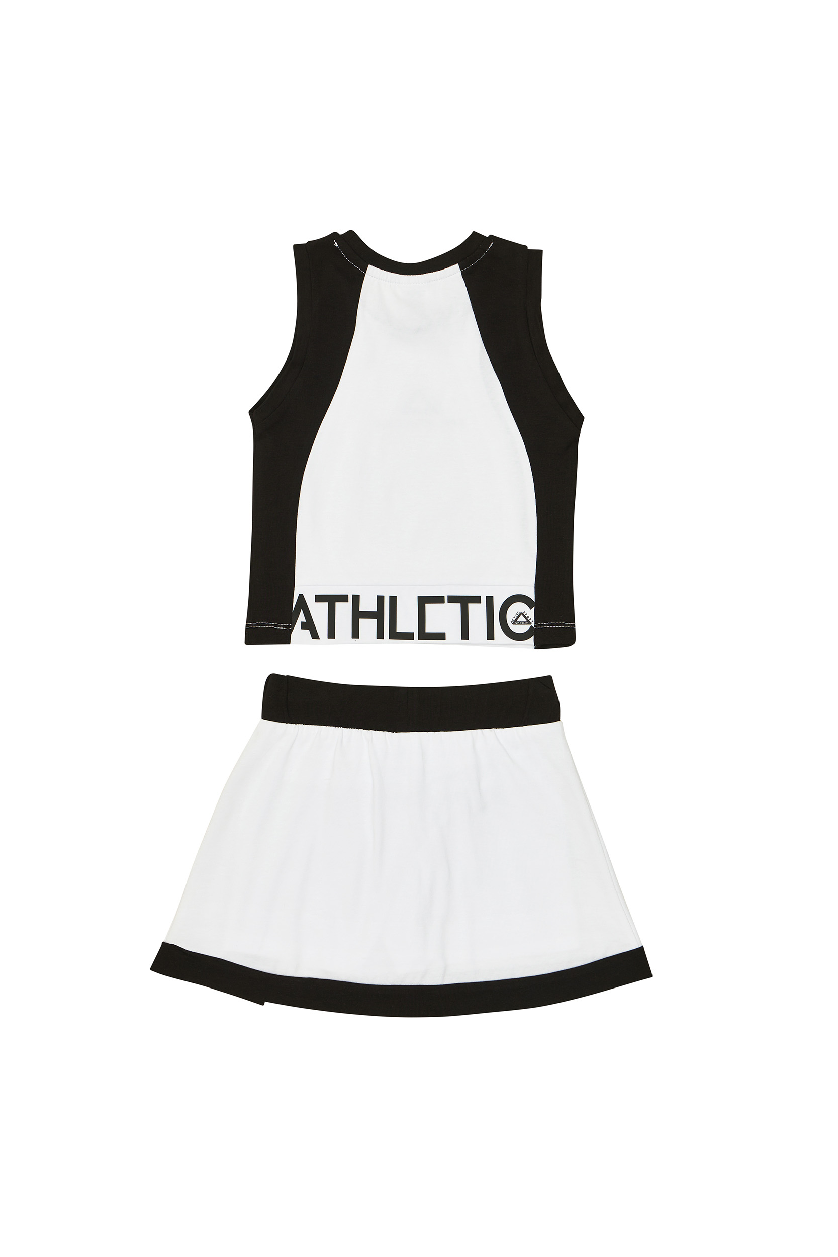 Σετ μακό με Μπλούζα αμάνικη crop top σε λευκή και μαύρη απόχρωση με σταμπωτό σχέδιο. Φούστα λευκή μακό με σταμπωτό σχέδιο, λάστιχο στη μέση και ενσωματωμένο σορτς κολάν. Ιδανική επιλογή για καθημερινό ντύσιμο, για βόλτα και άθληση το καλοκαίρι.
