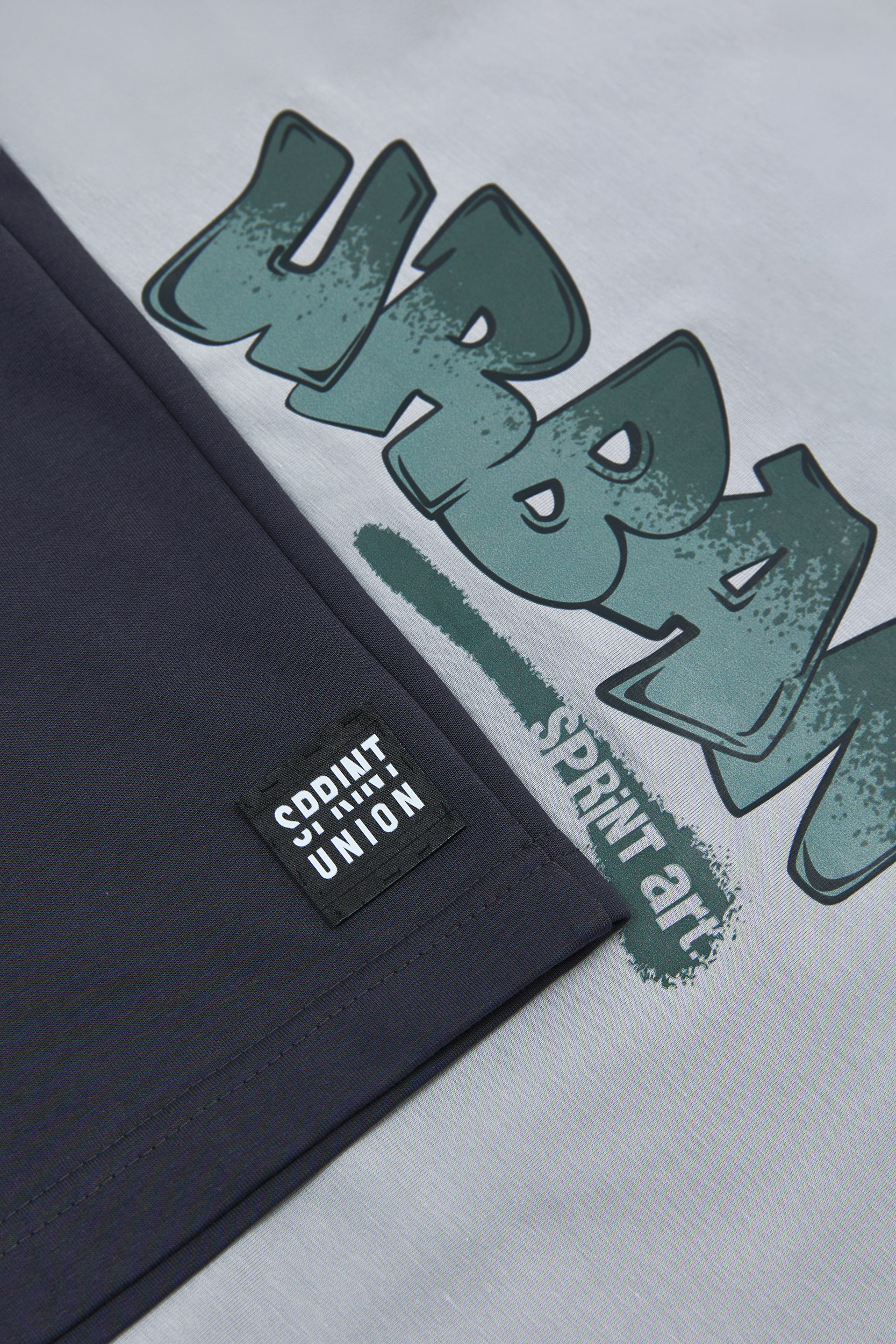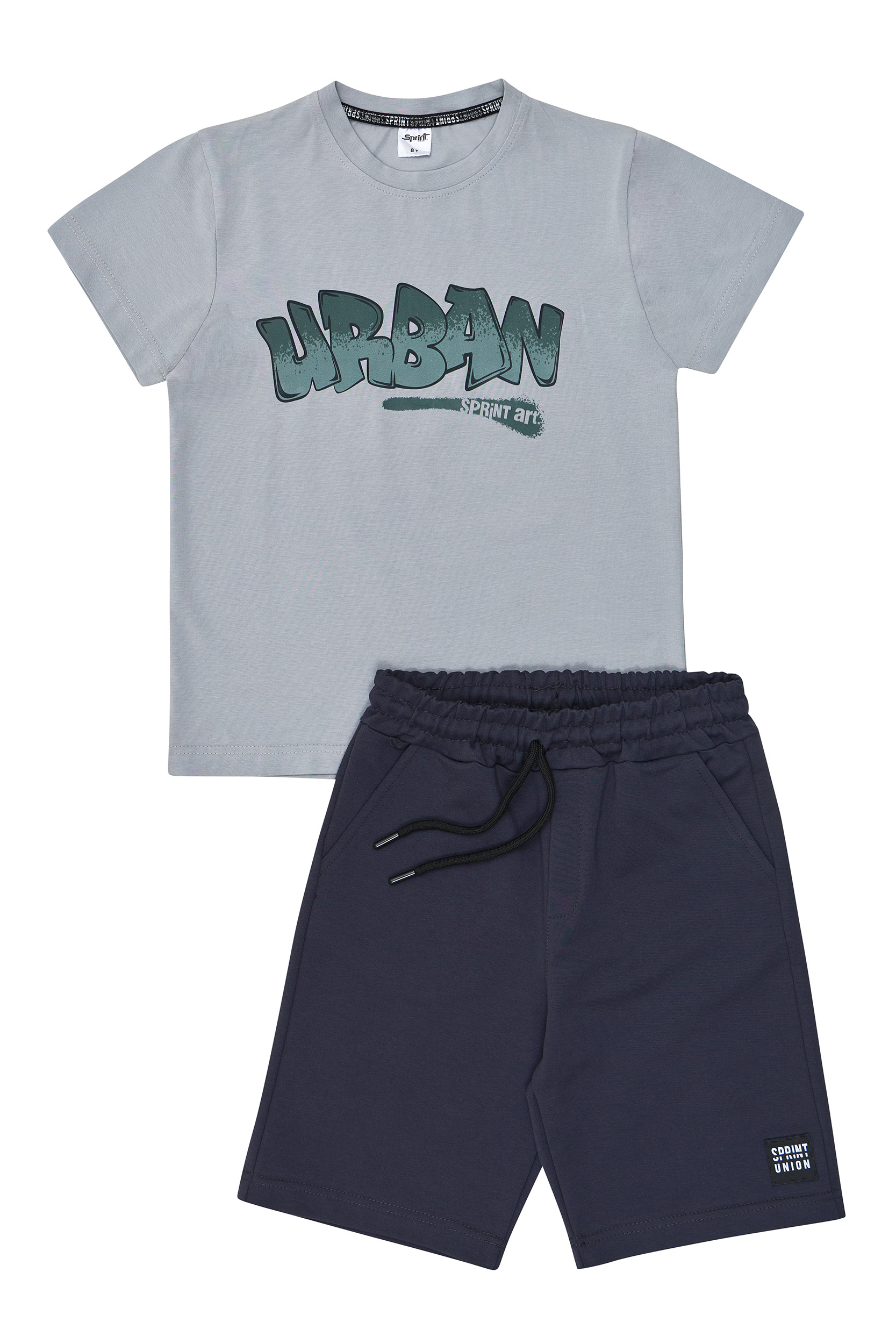 Παιδικό σετ 2 τεμαχίων. Μπλούζα με Urban τύπωμα “Create your own future” στο στήθος και στην πλάτη. Βερμούδα φούτερ με ελαστικό ζωνάρι και ρυθμιζόμενα κορδόνια, μπροστινές λοξές τσέπες και ετικέτα logo SPRINT στο κάτω μέρος.