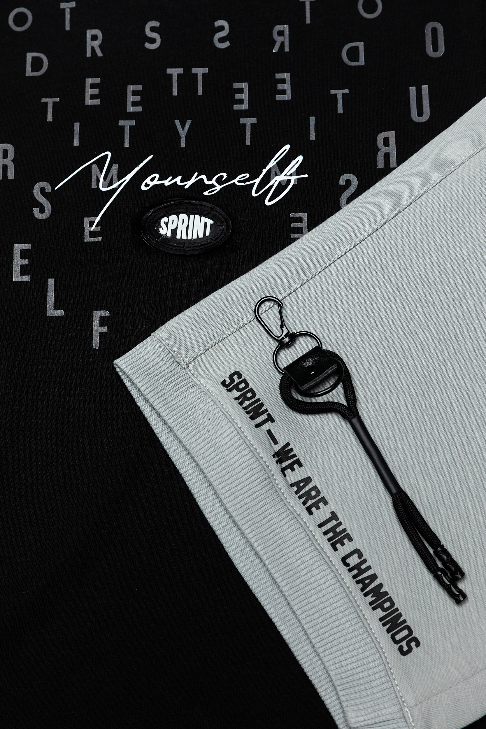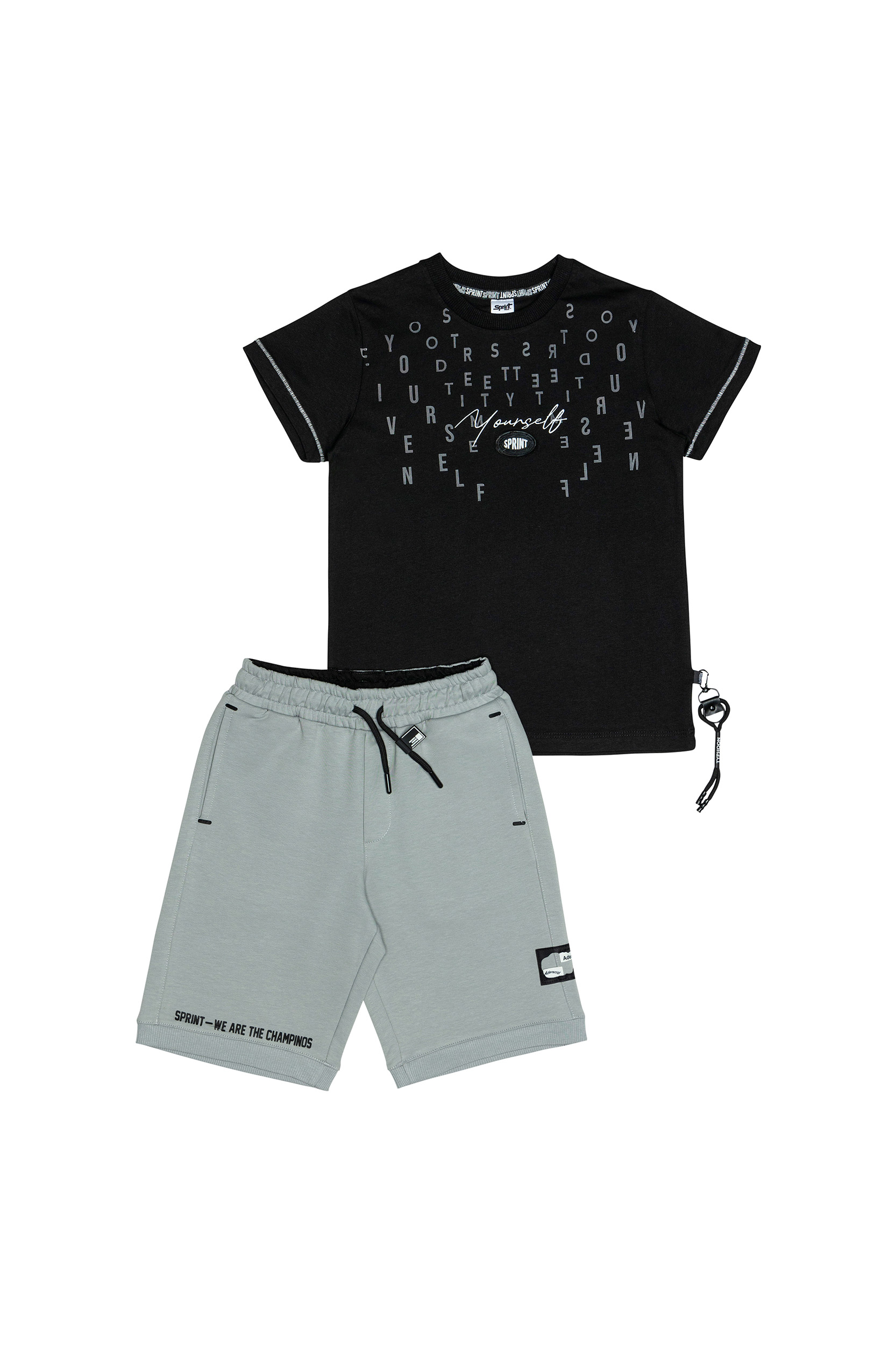 Παιδικό καλοκαιρινό σετ με βερμούδα Sprint. Κοντομάνικη μπλούζα με σχέδιο και βερμούδα με εσωτερικό λάστιχο, κορδόνι και τσέπες. Με μεγάλη περιεκτικότητα σε βαμβάκι για μεγαλύτερη άνεση.